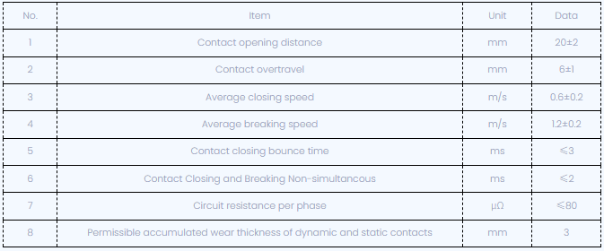 సర్క్యూట్ బ్రేకర్ను సర్దుబాటు చేసిన తరువాత, యాంత్రిక లక్షణ పారామితులు క్రింద చూపించబడ్డాయి: