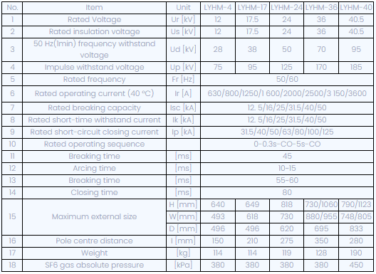 LYHM4 మీడియం వోల్టేజ్ సర్క్యూట్ బ్రేకర్ సల్ఫర్ హెక్సాఫ్లోరైడ్ (SF6) వాయువును ఆర్క్ ఆర్పివేయడం మరియు ఇన్సులేటింగ్ మాధ్యమంగా ఉపయోగిస్తుంది. SF6 గ్యాస్ మృదువైన బ్రేకింగ్ లక్షణాలను కలిగి ఉంటుంది మరియు కరెంట్ను విచ్ఛిన్నం చేసేటప్పుడు అంతరాయ దృగ్విషయం ఉండదు మరియు ఆపరేటింగ్ ఓవర్వోల్టేజ్ జరగదు. ఈ అద్భుతమైన లక్షణం సర్క్యూట్ బ్రేకర్ సుదీర్ఘ విద్యుత్ జీవితాన్ని కలిగి ఉందని నిర్ధారిస్తుంది. మరియు ఆపరేషన్ సమయంలో పరికరాలపై ప్రభావం, విద్యుద్వాహక స్థాయి మరియు ఉష్ణ ఒత్తిడి ప్రభావితం కాదు.
