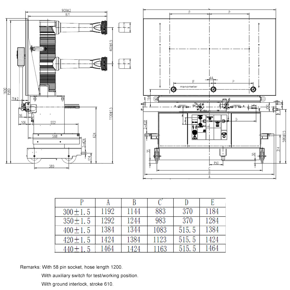 SF6 గ్యాస్ సర్క్యూట్ బ్రేకర్ మొత్తం రూపురేఖ డ్రాయింగ్