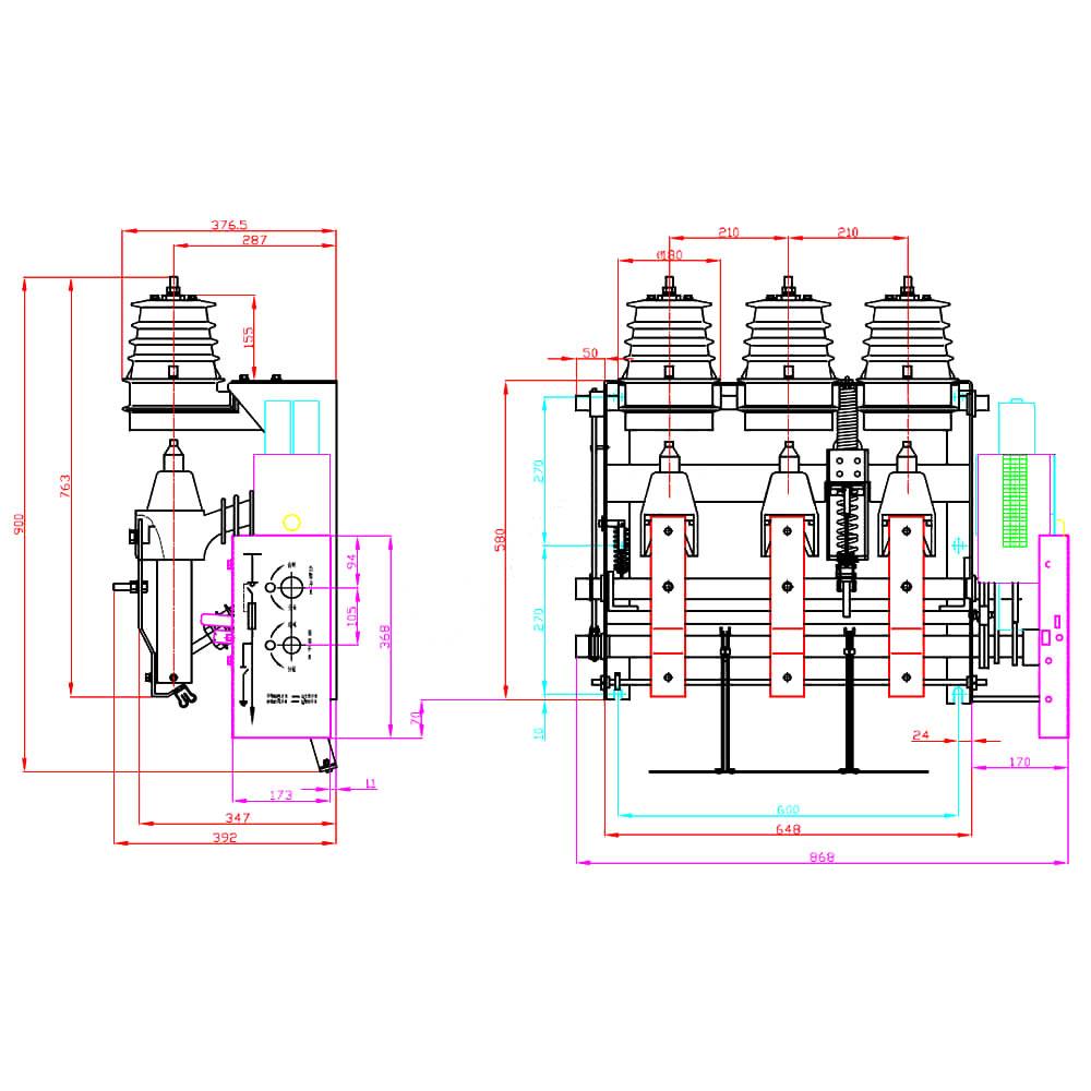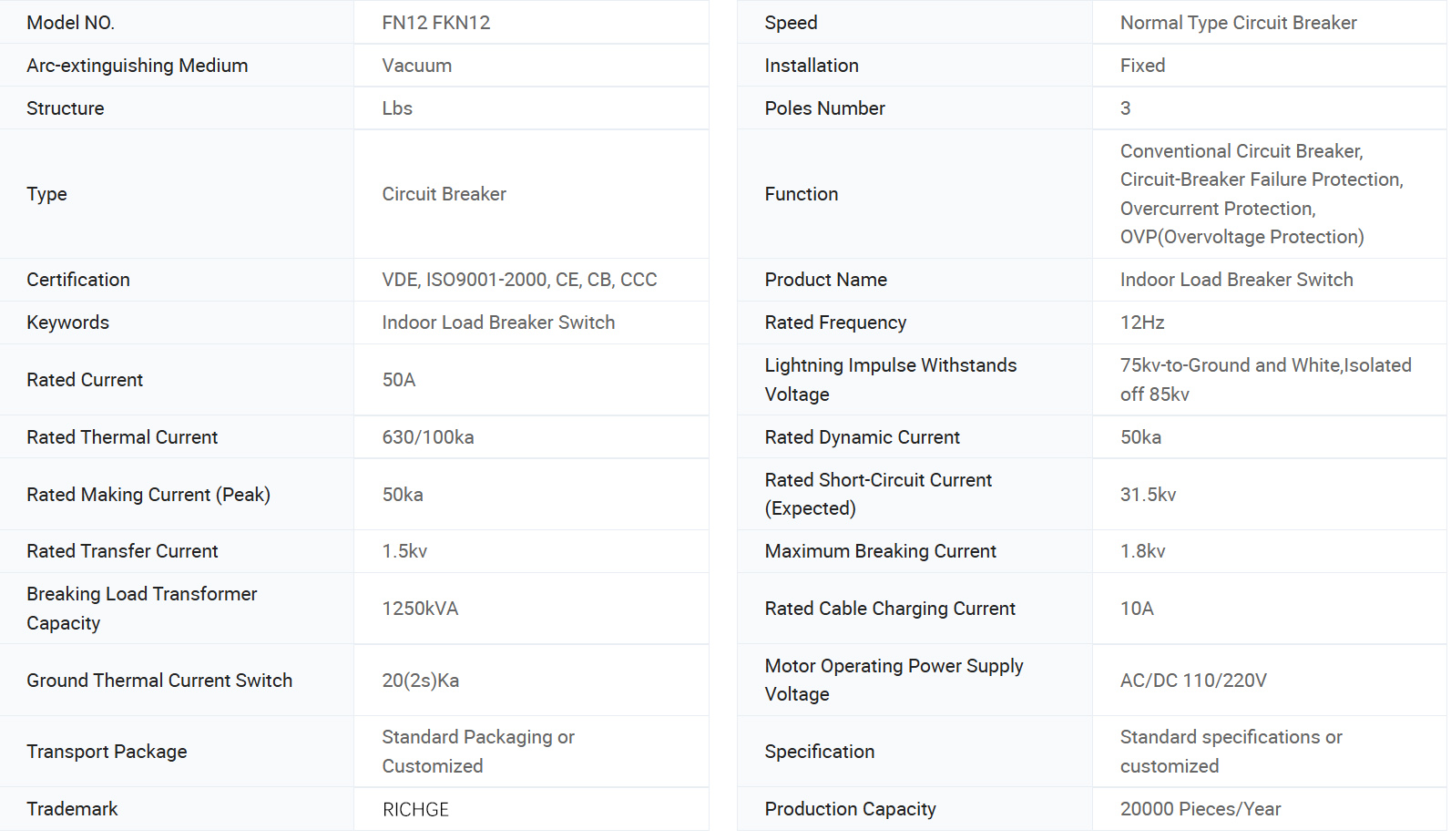 FKN12-12R.D/100-31.5 రకం ఇండోర్ ఎసి హై వోల్టేజ్ లోడ్ స్విచ్-ఫ్యూజ్ కలయిక అనేది ఇండోర్ హై వోల్టేజ్ స్విచ్ గేర్, ఇది FKN12-12D లోడ్ స్విచ్ మరియు XRNT పోర్ట్ -12 హై వోల్టేజ్ ప్రస్తుత పరిమిత ఫ్యూజ్ను మిళితం చేస్తుంది. ఇది షార్ట్-సర్క్యూట్ కరెంట్ వరకు ఏదైనా కరెంట్ను విశ్వసనీయంగా విచ్ఛిన్నం చేస్తుంది: లోడ్ స్విచ్ వర్కింగ్ కరెంట్ను విచ్ఛిన్నం చేస్తుంది, ఫ్యూజ్ షార్ట్-సర్క్యూట్ కరెంట్ను విచ్ఛిన్నం చేస్తుంది మరియు వర్కింగ్ కరెంట్ మరియు పూర్తి షార్ట్-సర్క్యూట్ కరెంట్ మధ్య ఏదైనా ఓవర్కరెంట్ను విచ్ఛిన్నం చేస్తుంది మరియు ఫ్యూజ్ లోడ్ స్విచ్ తెరిచి ఉంటుంది.