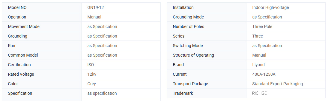 GN19-12, 12C సిరీస్ ఇండోర్ హై-వోల్టేజ్ డిస్కనెక్ట్ స్విచ్లు (ఇకపై డిస్కనెక్ట్ స్విచ్లు అని పిలుస్తారు) ఇండోర్ పరికరాలు 12KV, మూడు-దశల AC 60Hz యొక్క రేటెడ్ వోల్టేజ్, మరియు వోల్టేజ్ మరియు లోడ్ లేనప్పుడు సర్క్యూట్లను విభజించడానికి మరియు మూసివేయడానికి ఉపయోగిస్తారు.