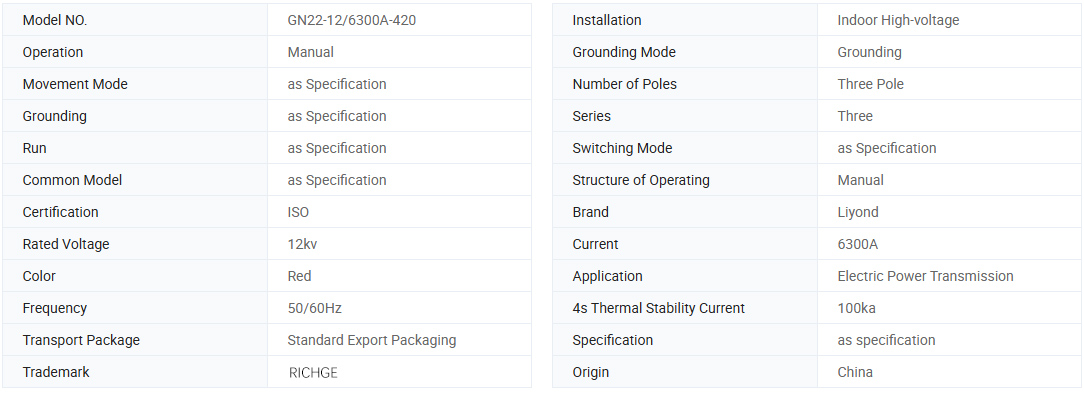 GN22-12 మూడు-దశల ఐసోలేటింగ్ స్విచ్ 6300A హై కరెంట్ ఇండోర్ హై వోల్టేజ్