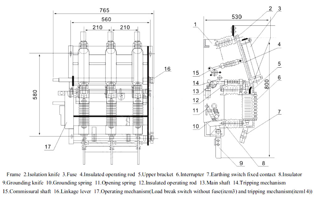 FZN21-12/T630-20 మరియు FZN21-12 (R) D/T125-31.5 రకం ఇండోర్ ఎసి హై వోల్టేజ్ లోడ్ స్విచ్-ఫ్యూజ్ కాంబినేషన్ యూనిట్ల ఉపకరణాలు మూడు-దశ AC 12KV, 5OHz శక్తి వ్యవస్థ కోసం, లేదా పూర్తి విద్యుత్ పరికరాలు మరియు ఇండస్టేరింగ్ నిర్మాణంతో మరియు లూప్-నెట్వర్క్ క్యాబినెట్ మరియు woothel ansilly unesires మరియు మైనింగ్ సంస్థలు, ఎత్తైన భవనాలు మరియు ప్రజా సౌకర్యాలు రింగ్ విద్యుత్ సరఫరా యూనిట్ లేదా టెర్మినల్ పరికరాలుగా ఉపయోగించవచ్చు, శక్తి పంపిణీ, నియంత్రణ మరియు రక్షణ. ఉత్పత్తుల యొక్క సాంకేతిక పనితీరు IEC ప్రచురణ 60265-1/FDIS << అధిక వోల్టేజ్ స్విచ్లు, పార్ట్ 1: 52KV హై వోల్టేజ్ లోడ్ స్విచ్ >>, IEC60420 << హై వోల్టేజ్ లోడ్ స్విచ్ - ఫ్యూజ్ కాంబినేషన్ యూనిట్లు >>; .