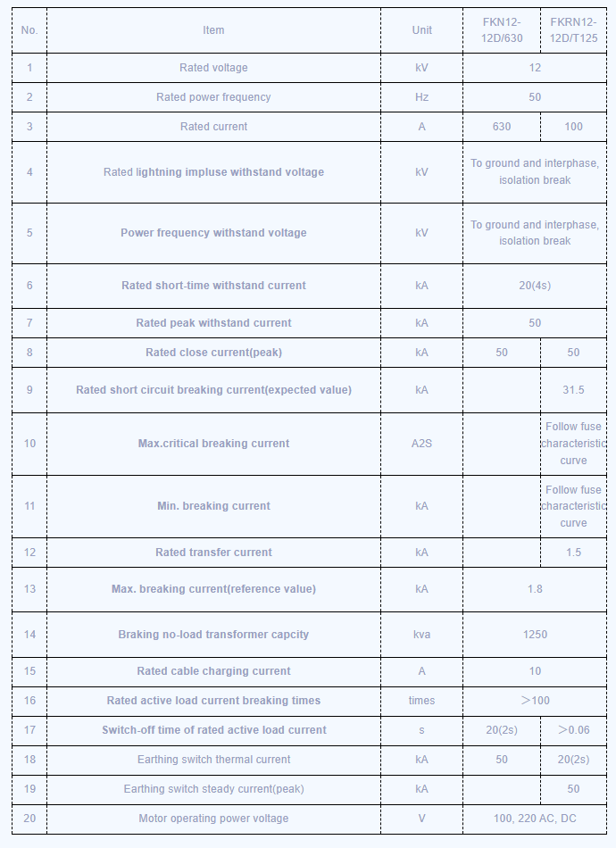 FKN12-12D/630-20 సిరీస్ ఎయిర్-బ్లాస్ట్ లోడ్ బ్రేక్ స్విచ్ (ఇకపై దీనిని FKRN12- 12D గా సూచిస్తారు) మరియు FKRN12-12D సిరీస్ ఎయిర్-బ్లాస్ట్ లోడ్ బ్రేక్ స్విచ్ మరియు ఫ్యూజ్ కాంబినేషన్ ఉపకరణాలు కొత్త సిరీస్ స్విచ్ గేర్ రేట్ చేసిన 12KV యొక్క మూడు దశల విద్యుత్ పంపిణీ వ్యవస్థకు వర్తిస్తాయి, ఇది ప్రొటెక్టింగ్ మరియు నియంత్రణ మరియు నియంత్రణ ఉపన్యాసం.