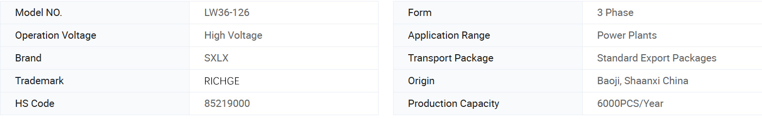 LW36-126 SF6 సర్క్యూట్ బ్రేకర్ సాంకేతిక పారామితులు
