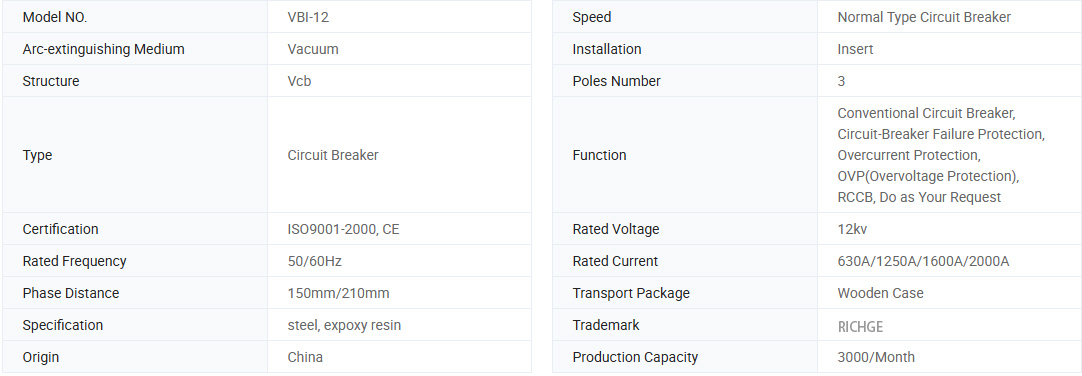 VBI-12 ఇండోర్ హై వోల్టేజ్ వాక్యూమ్ సర్క్యూట్ బ్రేకర్ మూడు-దశల AC 50Hz, 12KV ఇండోర్ పరికరం యొక్క రేట్ వోల్టేజ్. పారిశ్రామిక మరియు మైనింగ్ సంస్థల కోసం, విద్యుత్ ప్లాంట్లు మరియు సబ్స్టేషన్లు ఎలక్ట్రికల్ ఎక్విప్మెంట్ కంట్రోల్ అండ్ ప్రొటెక్షన్ ప్రయోజనాల వలె మరియు ఈ స్థలం యొక్క తరచుగా ఆపరేషన్ కోసం.