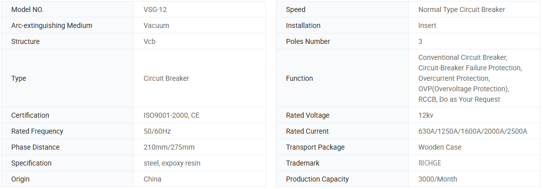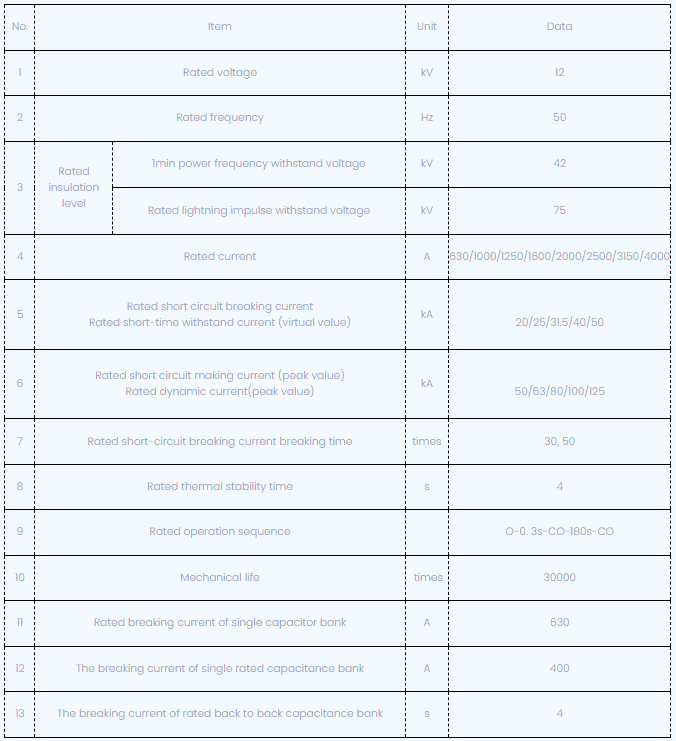 VSG-12 హ్యాండ్కార్ట్ రకం వాక్యూమ్ సర్క్యూట్ బ్రేకర్ సాంకేతిక పరామితి