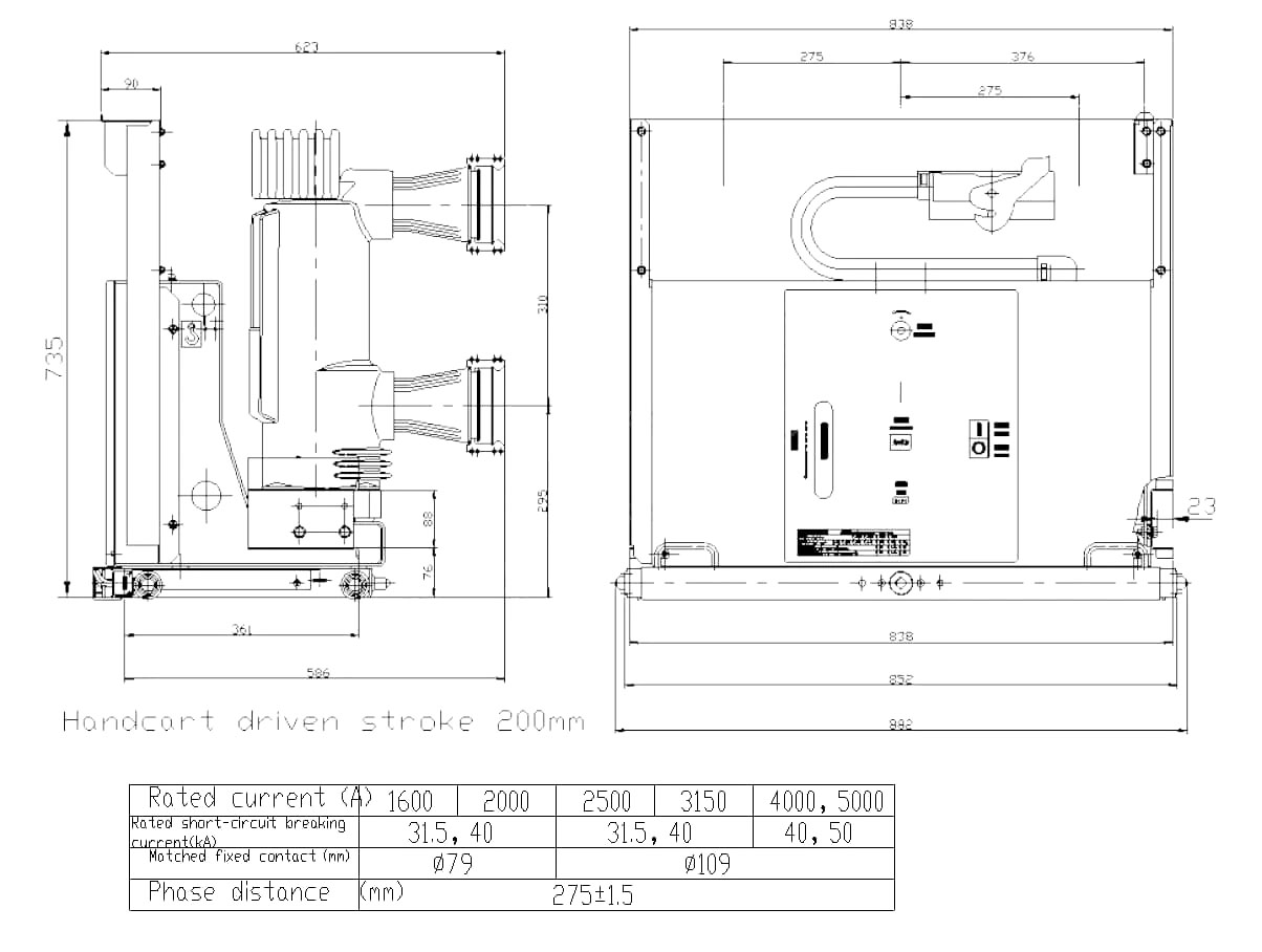 · డ్రా-అవుట్ రకం డిజైన్: వాక్యూమ్ సర్క్యూట్ బ్రేకర్ డ్రా-అవుట్ రకం నిర్మాణాన్ని అవలంబిస్తుంది, సంస్థాపన, నిర్వహణ మరియు తనిఖీని మరింత సౌకర్యవంతంగా చేస్తుంది. ఈ డిజైన్ వినియోగదారులకు మొత్తం వ్యవస్థకు భంగం కలిగించకుండా బ్రేకర్ను తొలగించడానికి లేదా భర్తీ చేయడానికి వశ్యతను అందిస్తుంది.